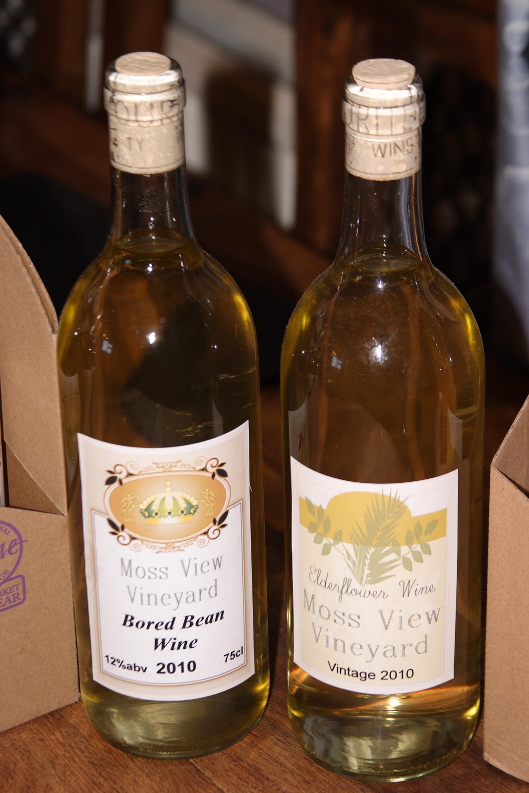 The first batch of elderflower was bottled and labelled about 3 weeks ago now, and the batch of broad bean wine was bottled and labelled last week! As you can see, they've both cleareed really well, and the labels I made in OpenOffice and stuck on with a glue stick really finish them off well!